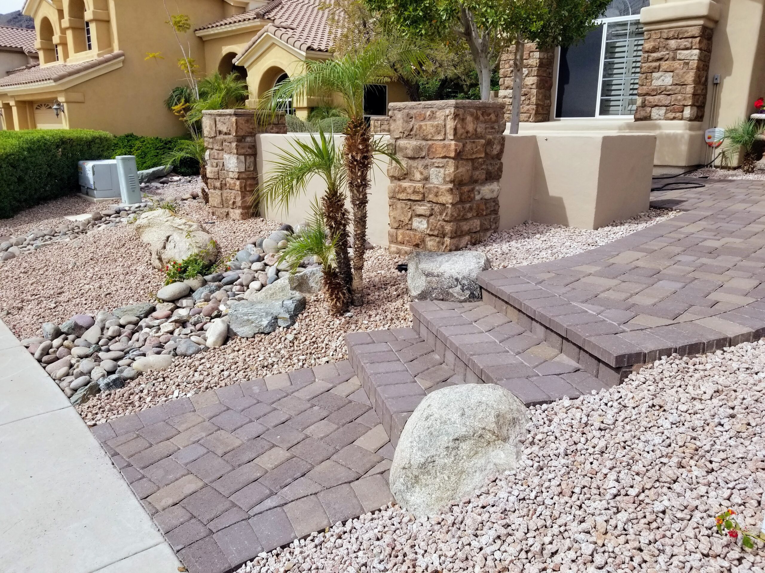 Enhance your outdoor living space with expertly crafted patios and pavers designed to withstand Arizona’s heat while adding lasting beauty and value. Whether you’re envisioning a cozy paver patio for relaxing evenings or a functional walkway that complements your landscape, we offer a wide range of styles, colors, and materials to match your vision. Our installations are built for durability, drainage, and desert-friendly performance, perfect for creating inviting, low-maintenance outdoor spaces.